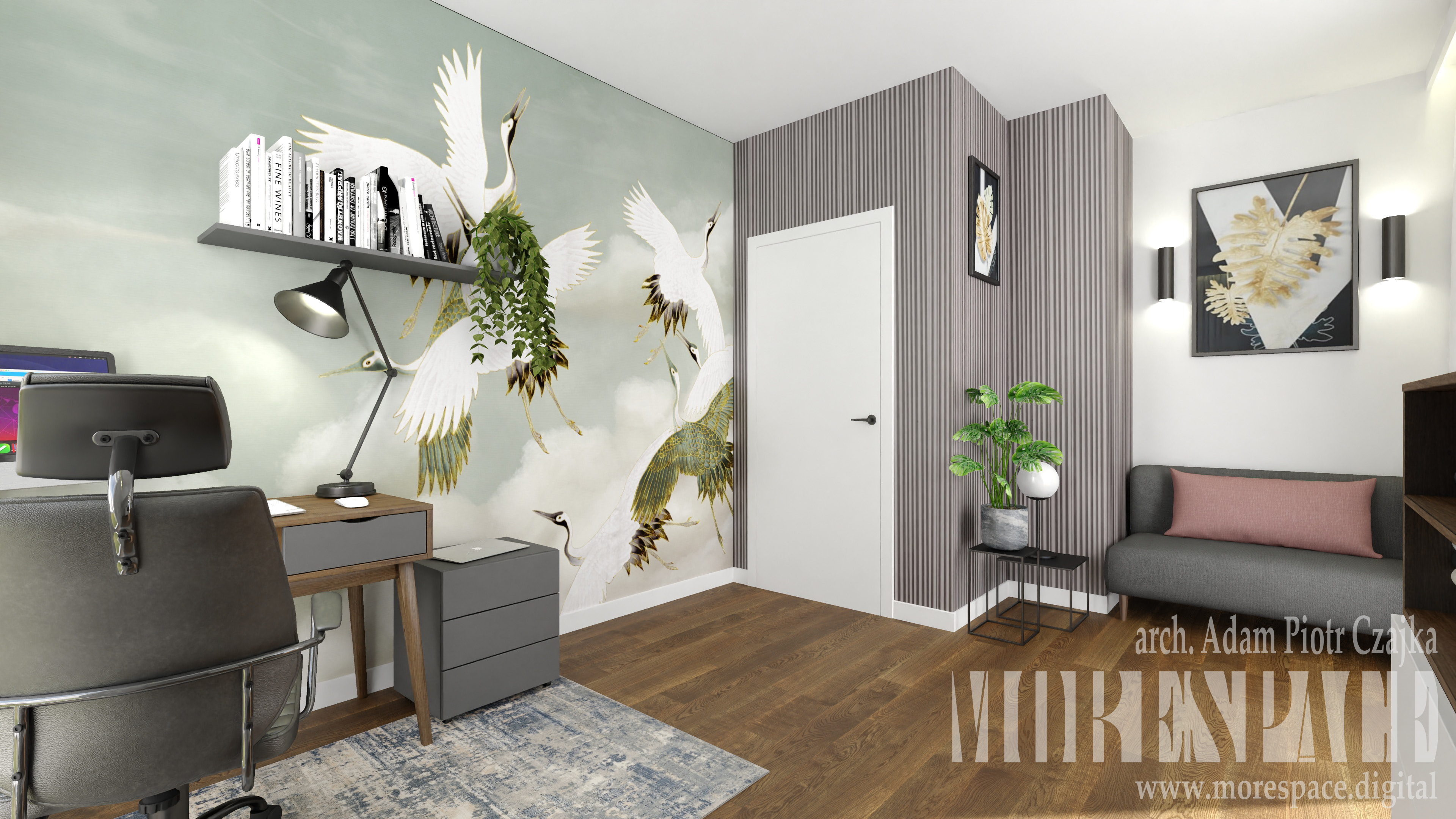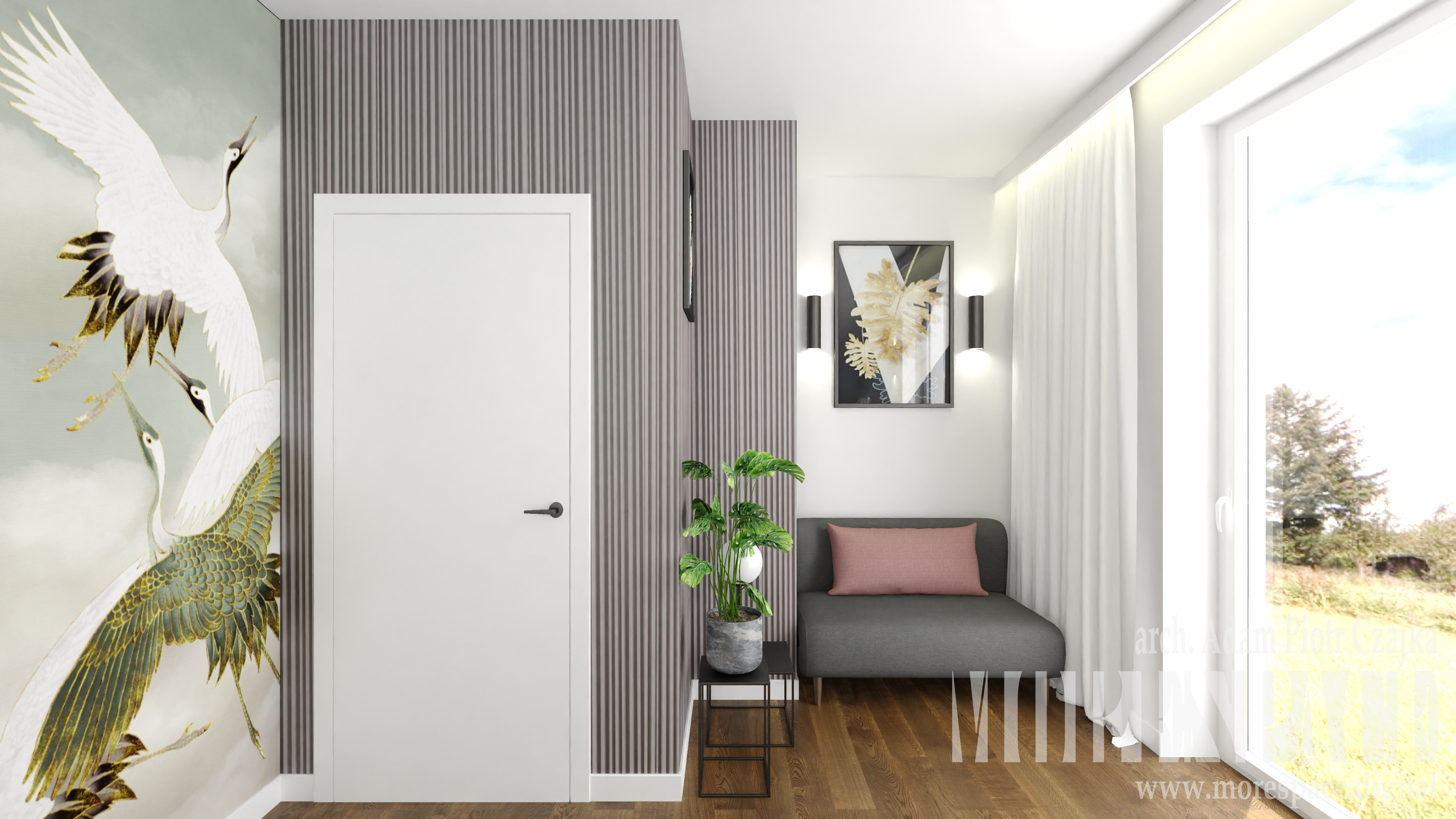 SZARA SYPIALNIA Z BIBLIOTECZKĄ