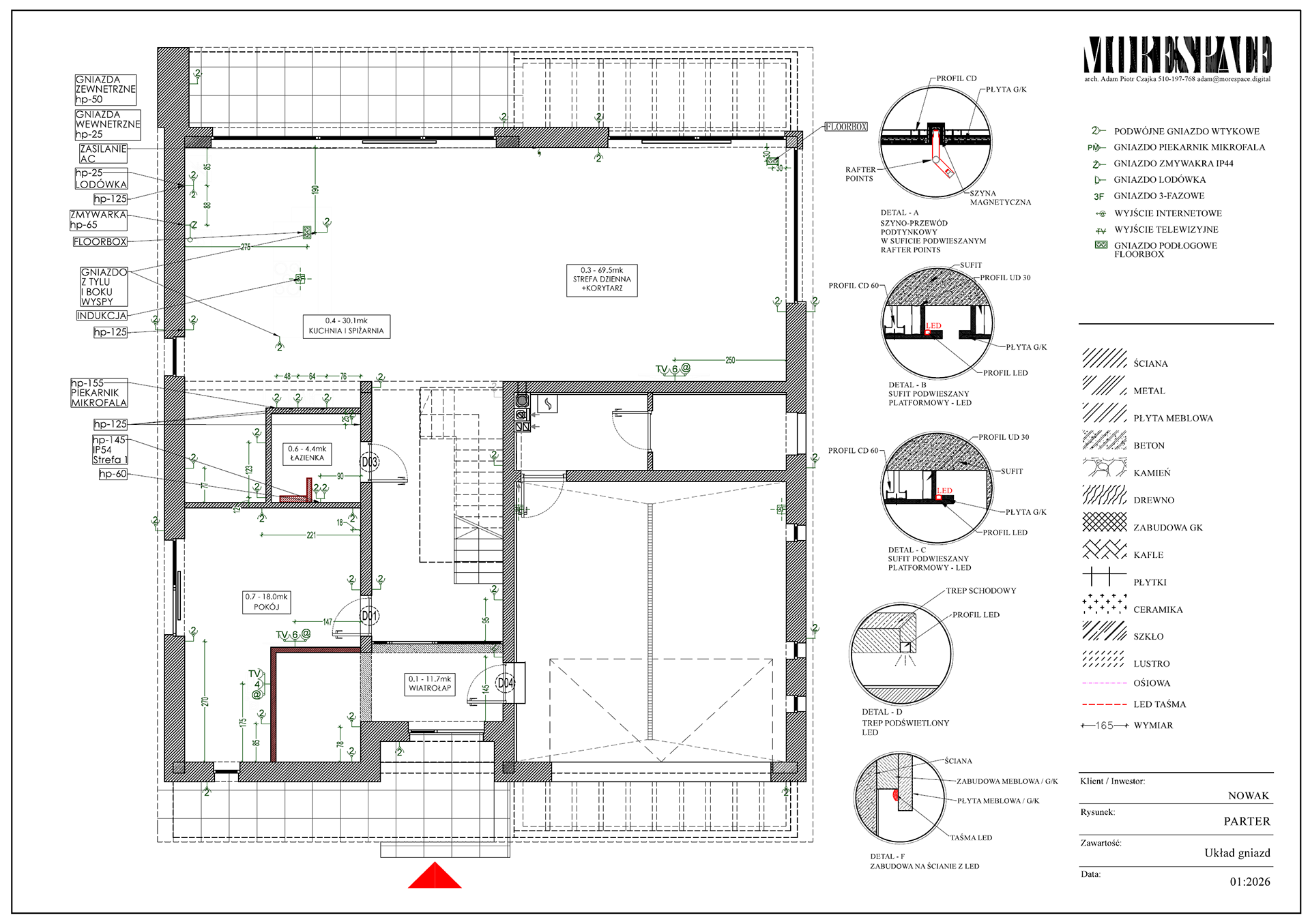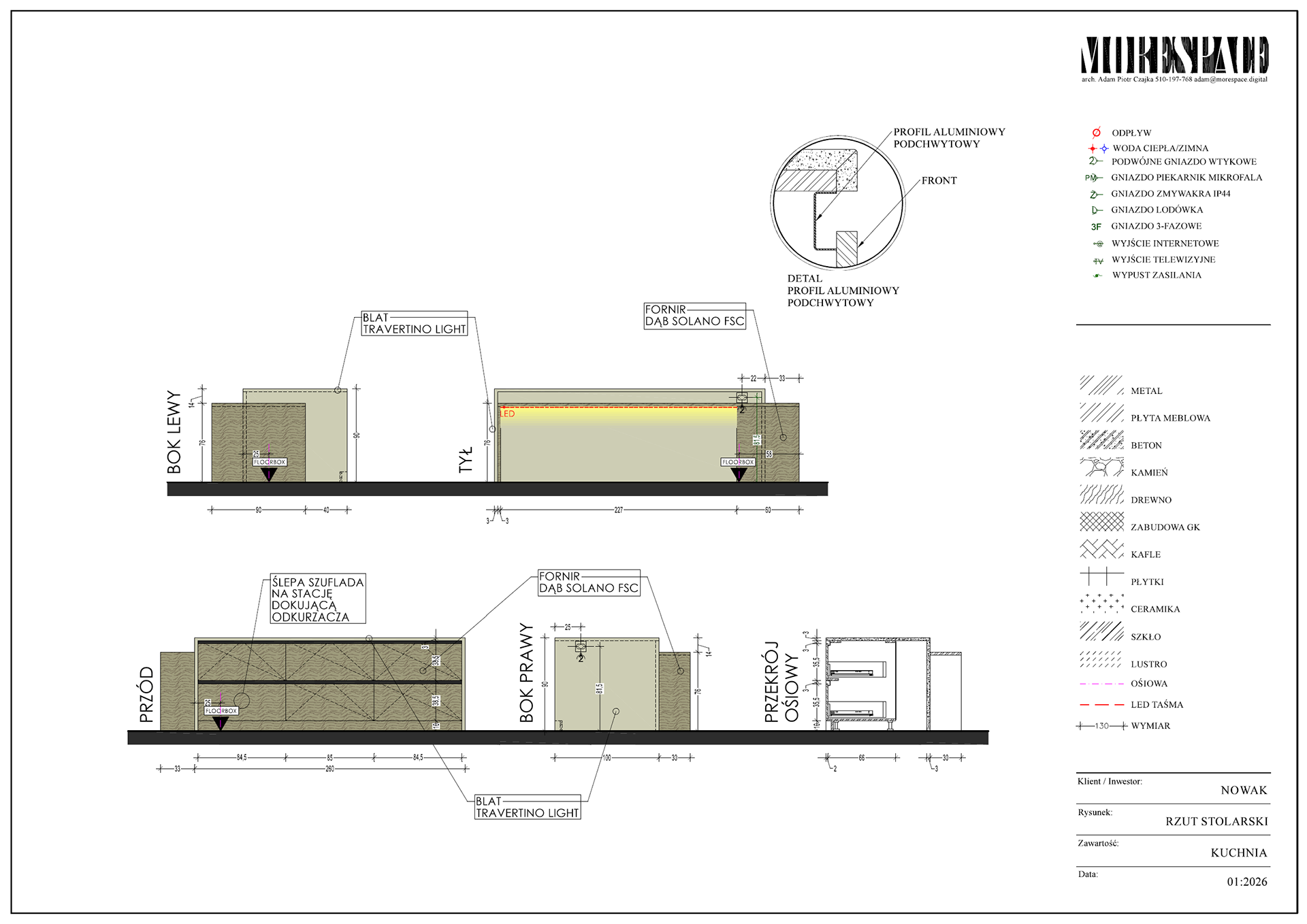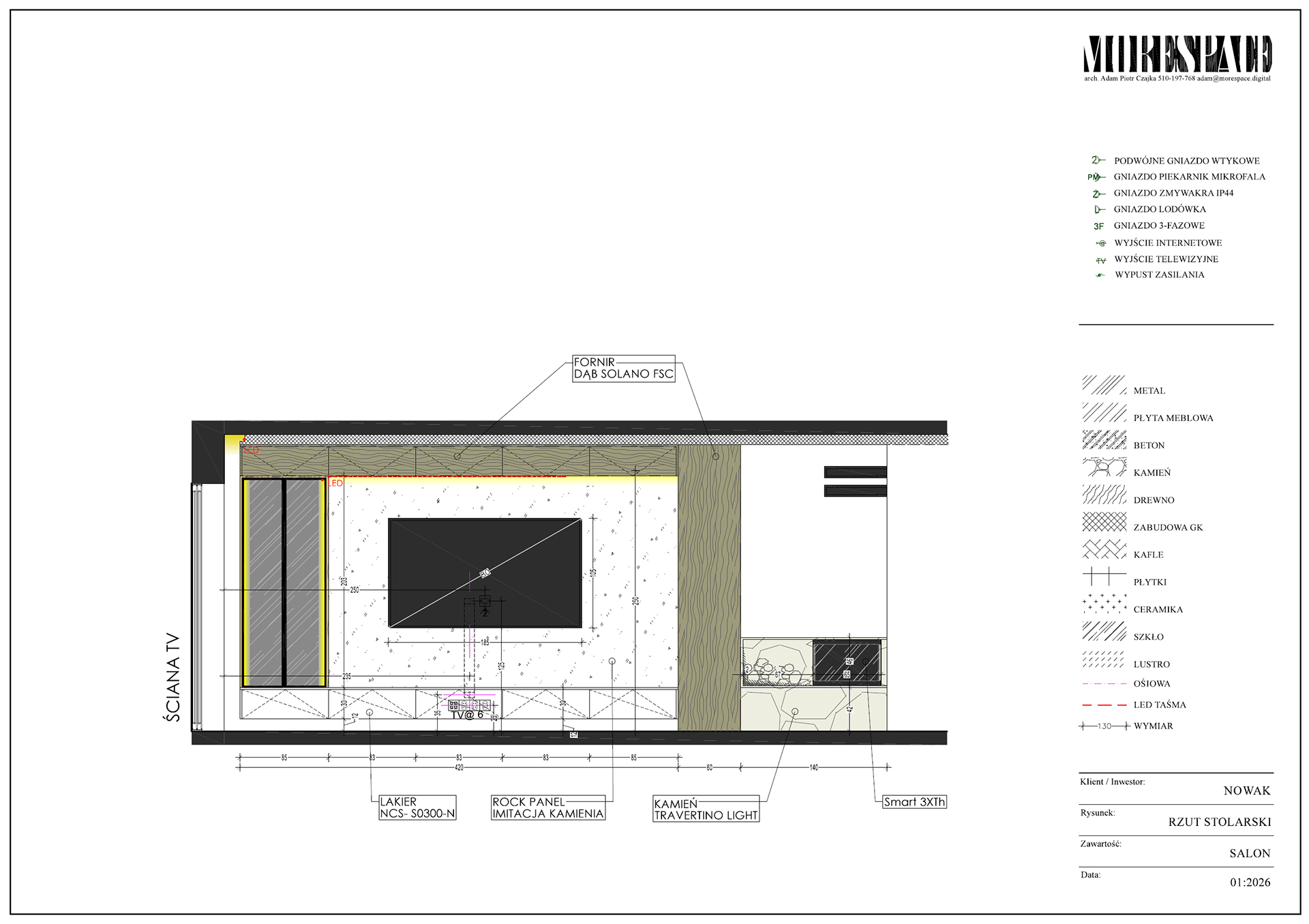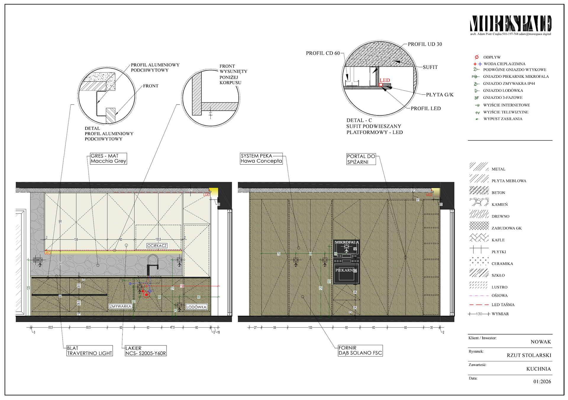 Na podstawie projektu powstaje komplet rysunków dla wykonawców – elektryka, hydraulika, zabudowy stolarskie, sufity, okładziny.