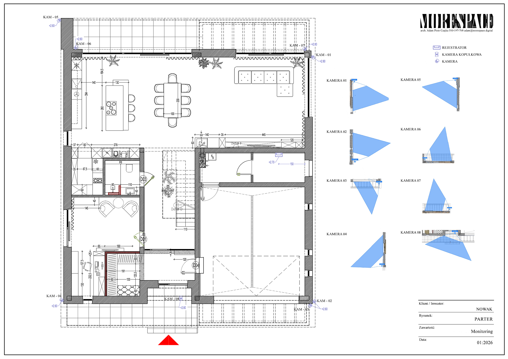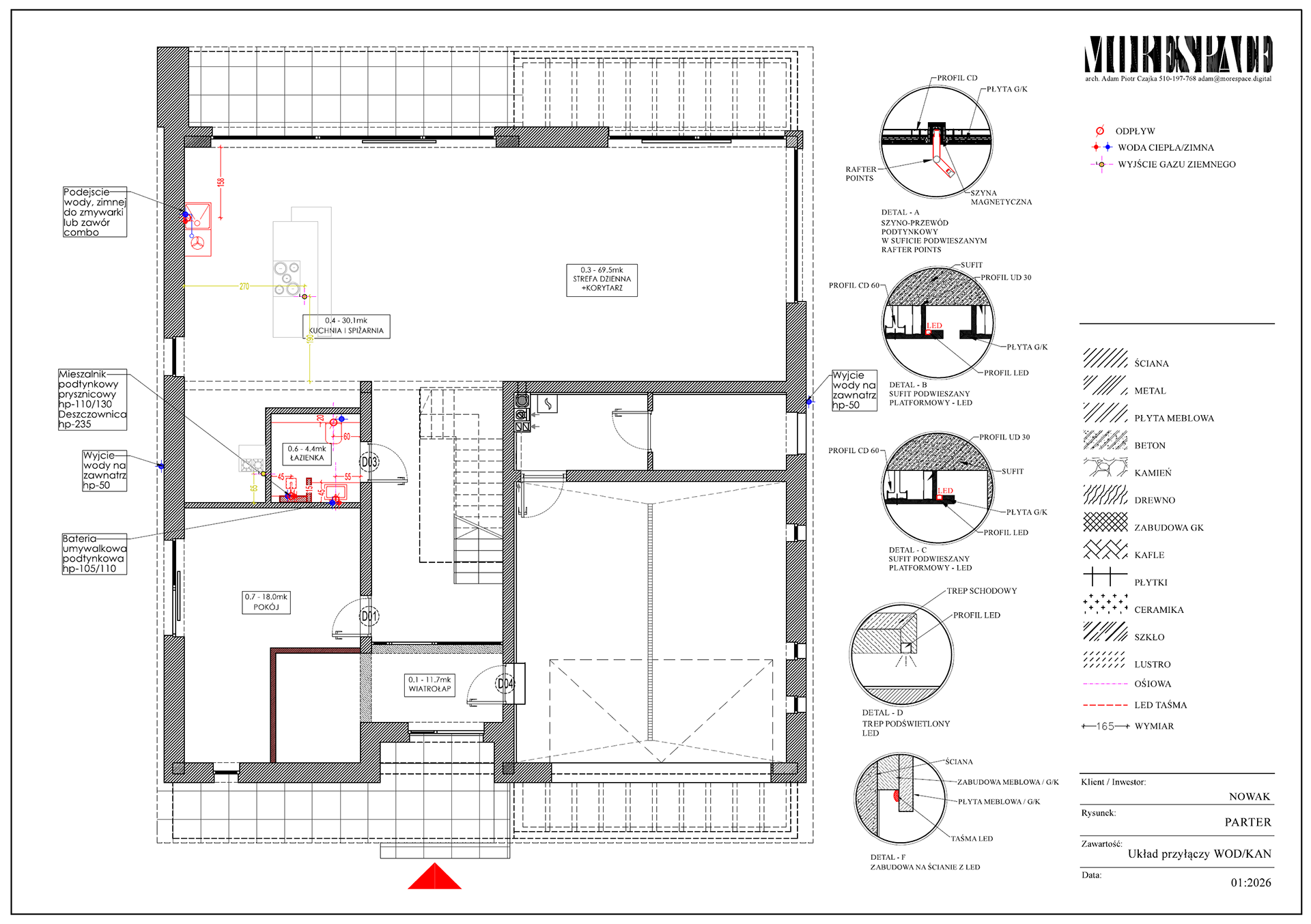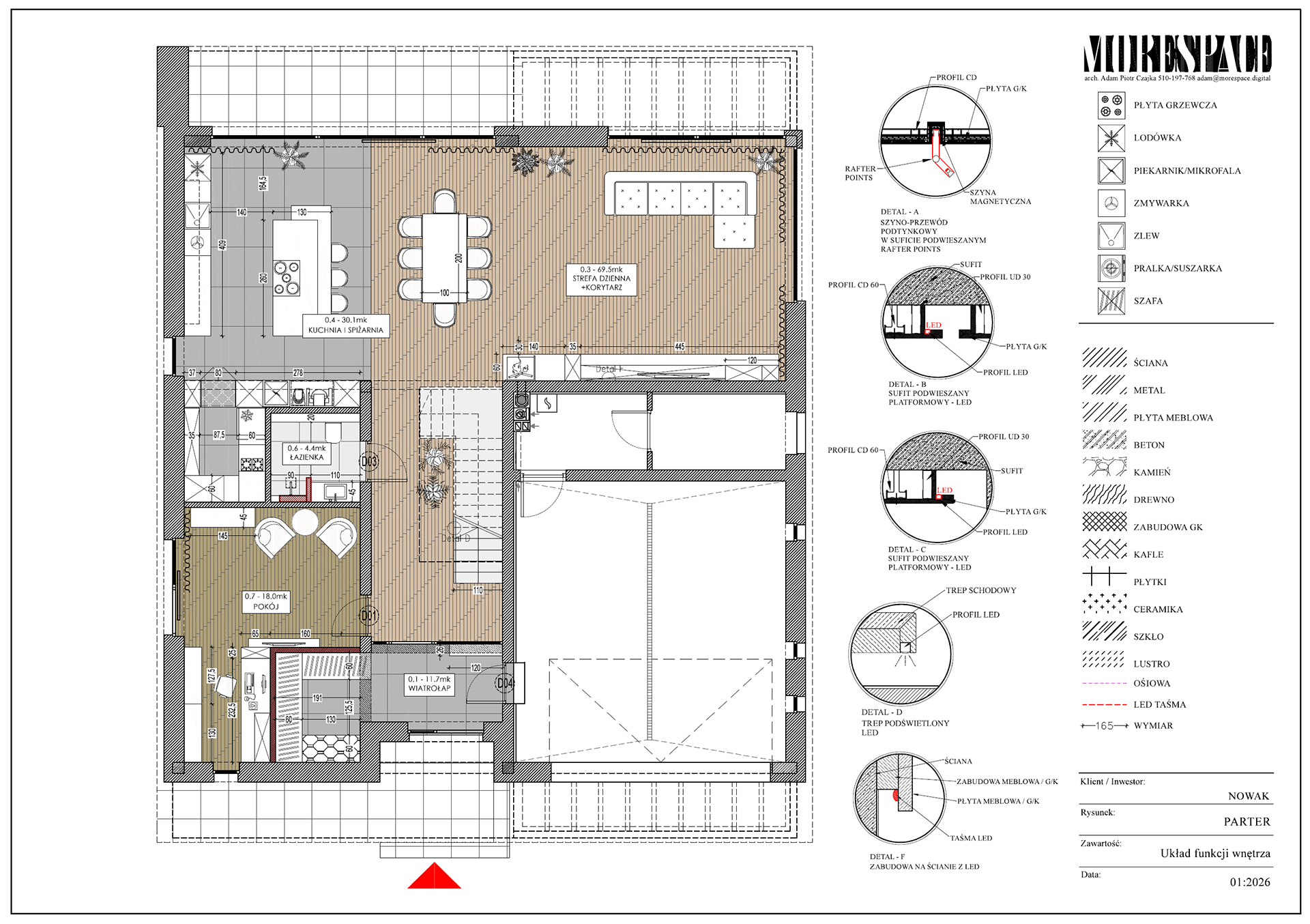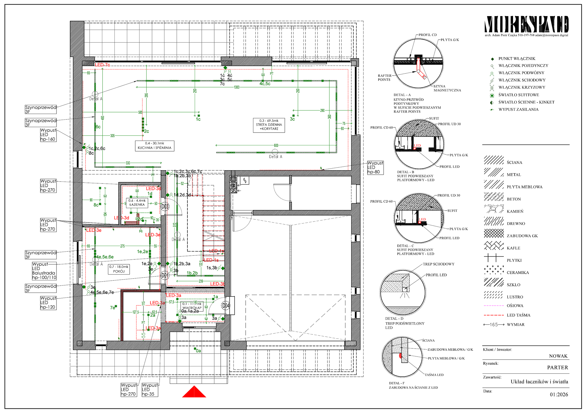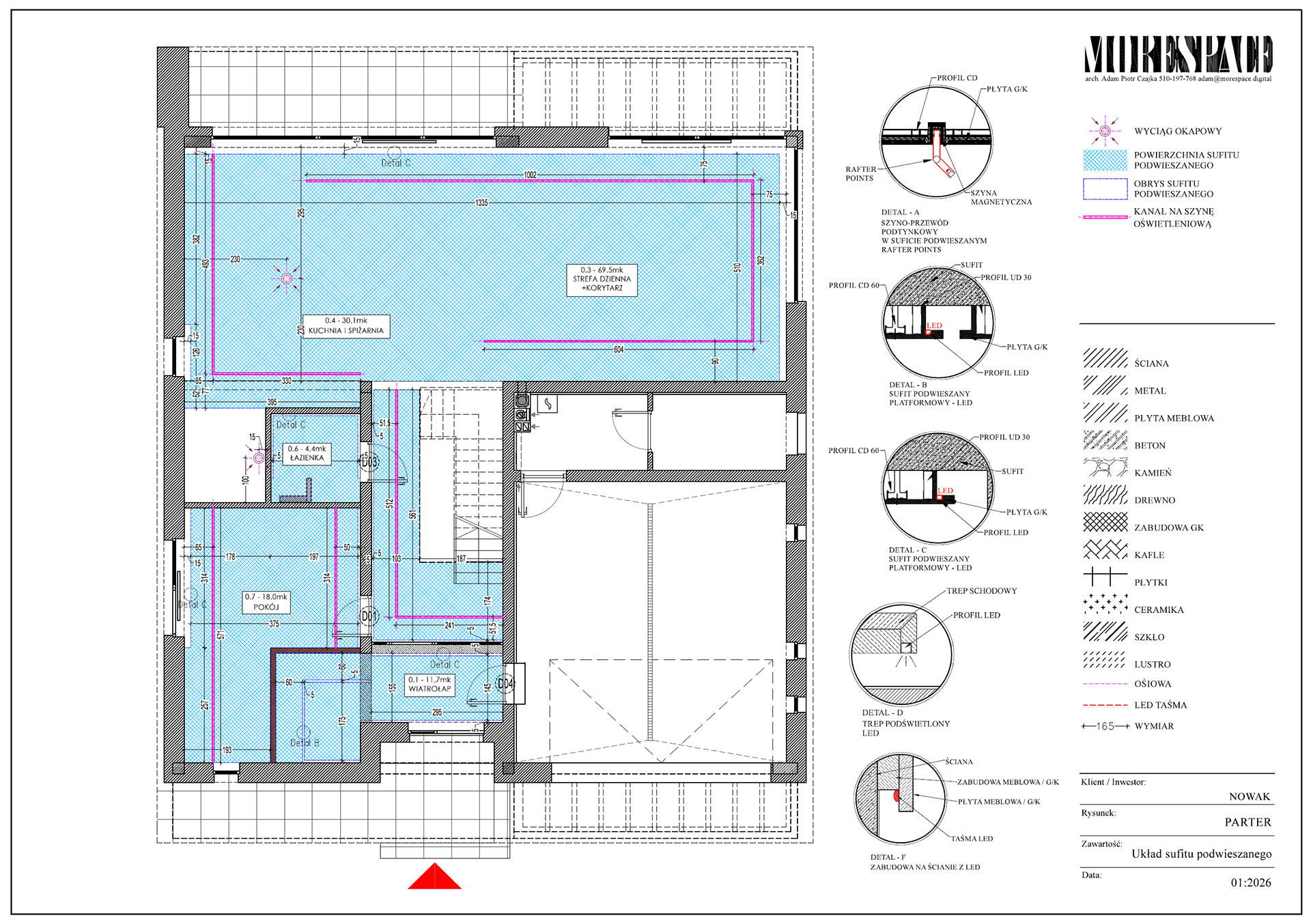 Na podstawie projektu powstaje komplet rysunków dla wykonawców – elektryka, hydraulika, zabudowy stolarskie, sufity, okładziny.